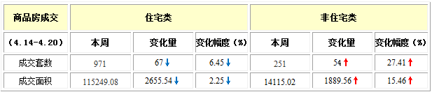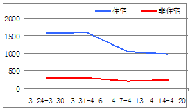 2014.4.14-4.20:日均成交175套左右,套均成交面积105.86平米左右,较上一周住宅类商品房成交稍有下滑,非住宅类商品房成交上升势头明显。