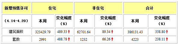 2014.4.14-4.20本周新增预售4223套,较上周出现井喷。