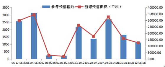 本周(08.12-08.18)共4个项目取得预售许可证,新增预售1136套,其中住宅989套,非住宅0套,其它147套,新增预售面积共126362.37平方米,住宅119267.30平方米,非住宅0平方米,其它7095.07平方米。