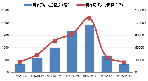 成交套数(套) | 1211 | 111↓ | 8.40%↓ | 1067 | 101↓ | 8.65%↓ |