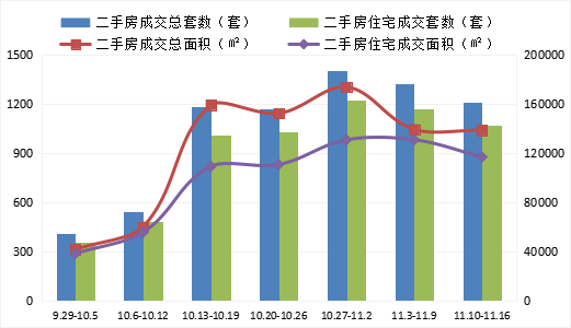 2025.11.10-11.16周苏州市二手房共计成交1211套,较上周减少111套,环比下降8.40%;成交总面积138318.82㎡,较上周减少669.65㎡,环比下降0.48%。本周住宅成交量1067套,较上周减少101套,环比下降8.65%;成交面积116569.25㎡,较上周减少14003.81㎡,环比下降10.72%。其中,住宅总成交面积占成交总面积的84.28%。