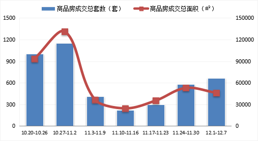 表1 苏州市2025.12.1-12.7周商品房成交情况