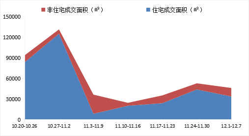 2025.12.1-12.7周苏州市二手房共计成交1212套,较上周减少114套,环比下降8.60%;成交总面积151814.72㎡,较上周减少24084.06㎡,环比下降13.69%。本周住宅成交量1067套,较上周减少106套,环比下降9.04%;成交面积116201.36㎡,较上周减少10867.38㎡,环比下降8.55%。其中,住宅总成交面积占成交总面积的76.54%。